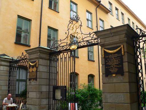 Tyska Kyrkan church is across the street