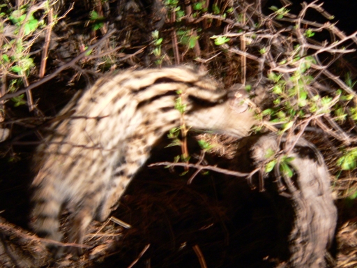 the color pattern of the Serval cat is hard to distinguish in the trees & long grass