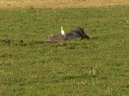 Cattle Egret on Hippo's back