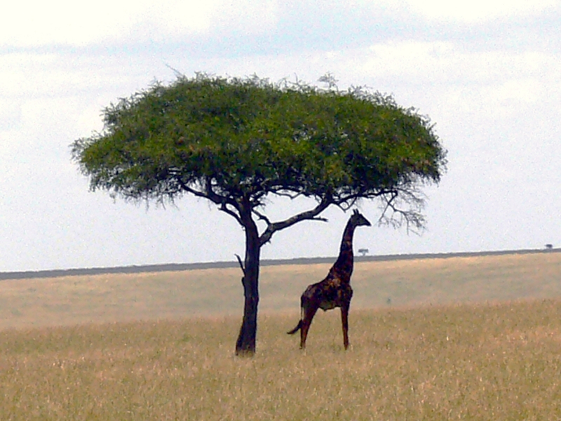 Giraffe under acacia tree