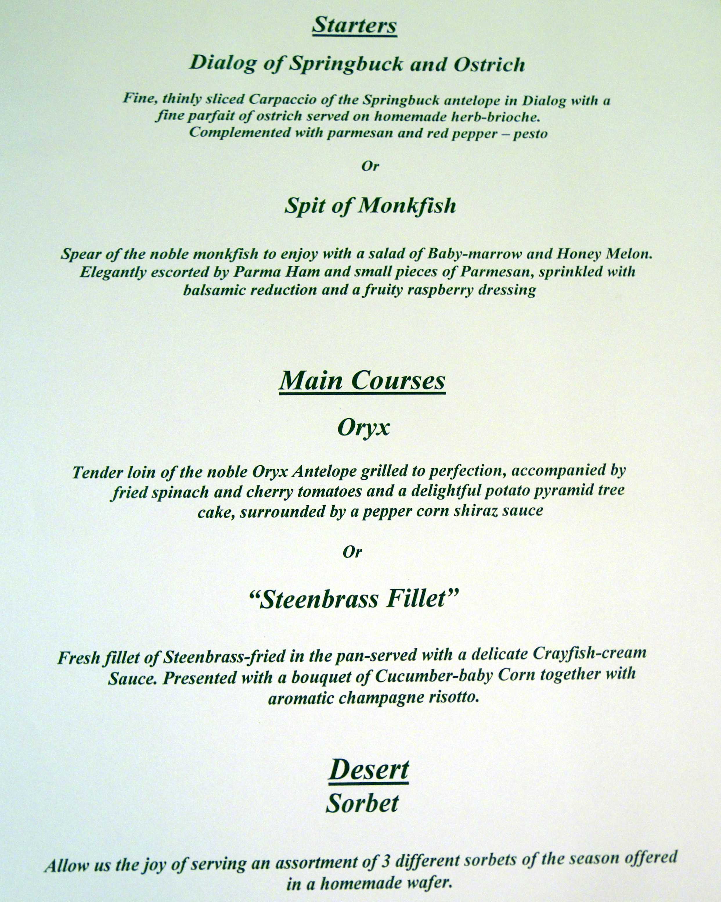HH Leo's Castle Restaurant Menu