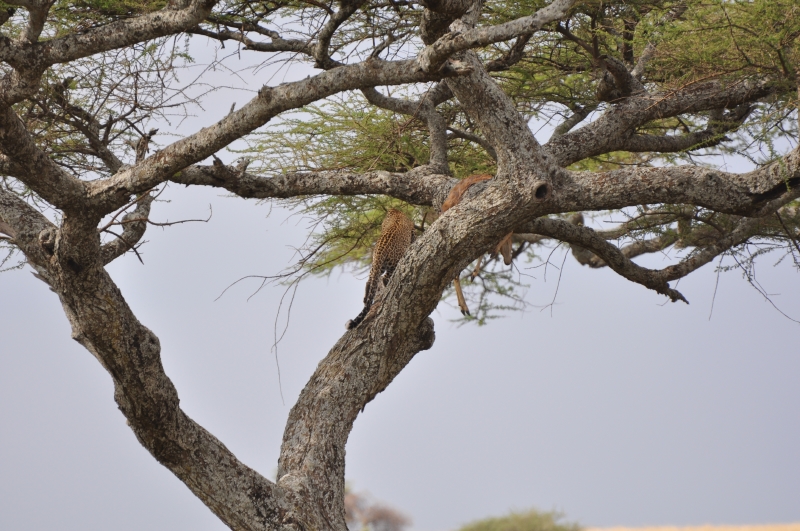 Leopard in Tree with Kill