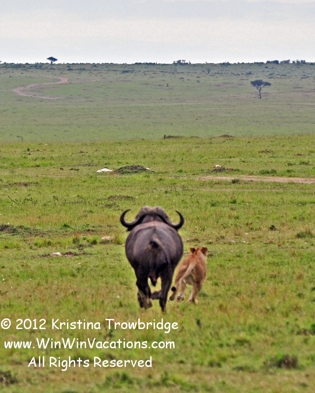 Buffalo Chases Lion Away