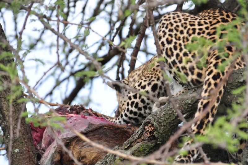 Leopard in a Tree with a Kill