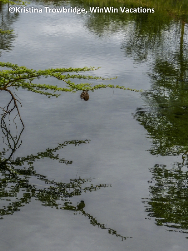 Hanging weavers' nest and reflection