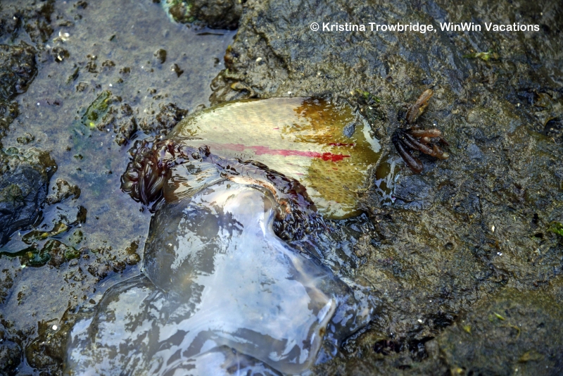 Moon Jellyfish eating Anemone