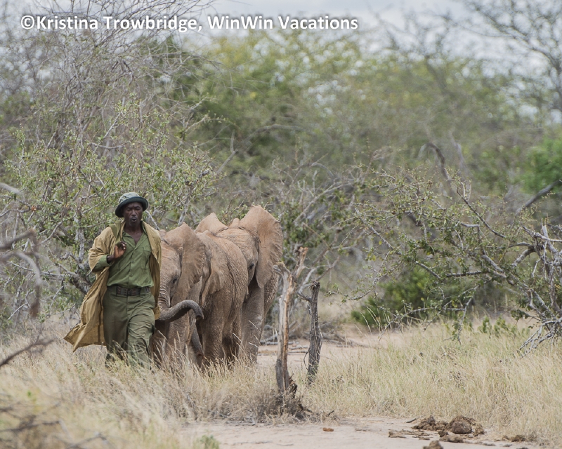 4 orphans coming from the bush at Ithumba
