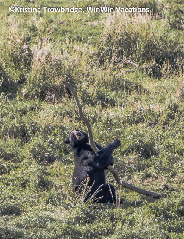 Black bear with a stick