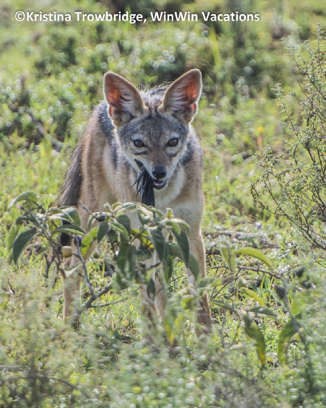 Black-backed jackal with wildebeest tail
