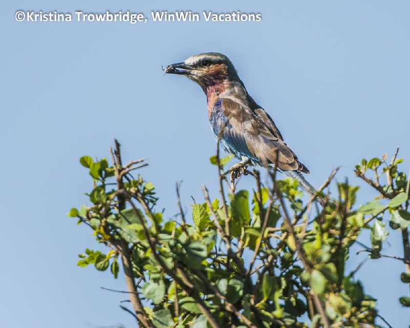 Lilac-breasted Roller with grasshopper
