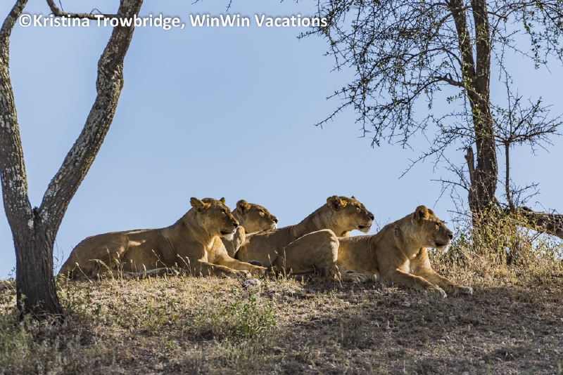 Lionesses looking at lunch