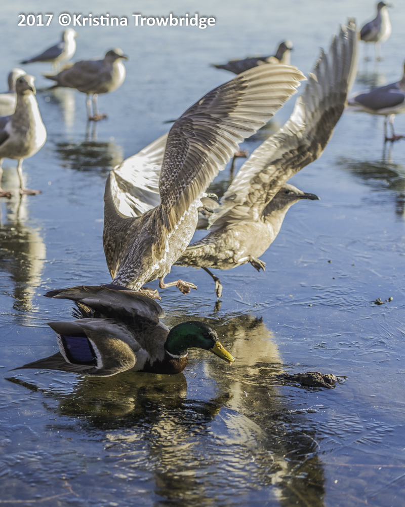 Mallard & Glaucous-winged gulls on ice