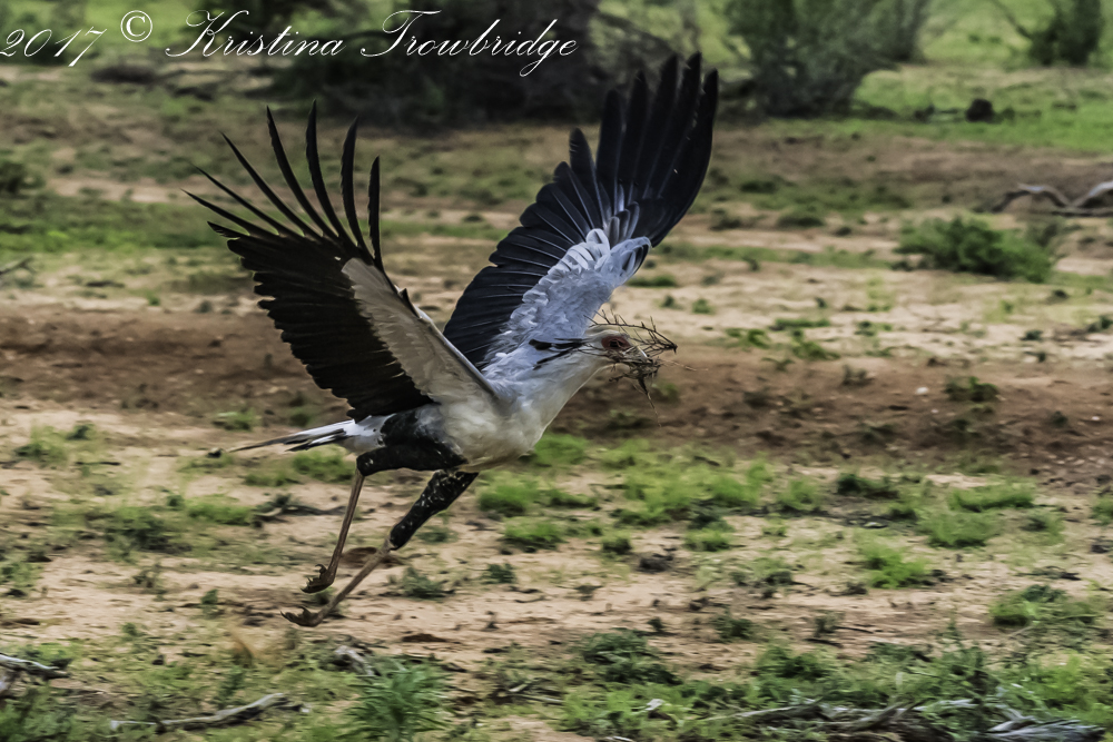 Secretary Bird with sticks flying