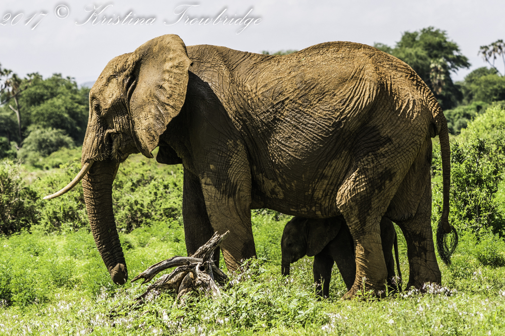 Elephant with newborn calf