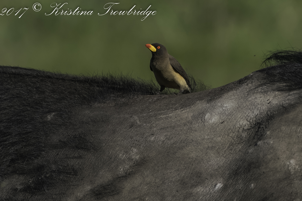Cape buffalo with Yellow-billed oxpecker