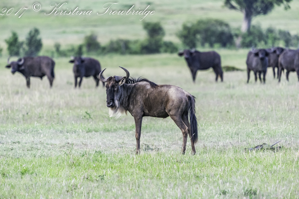 Bearded wildebeest with Cape buffalo