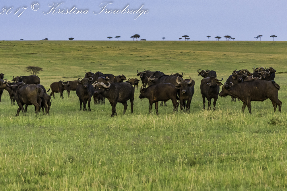 Breeding herd of buffalo sunset
