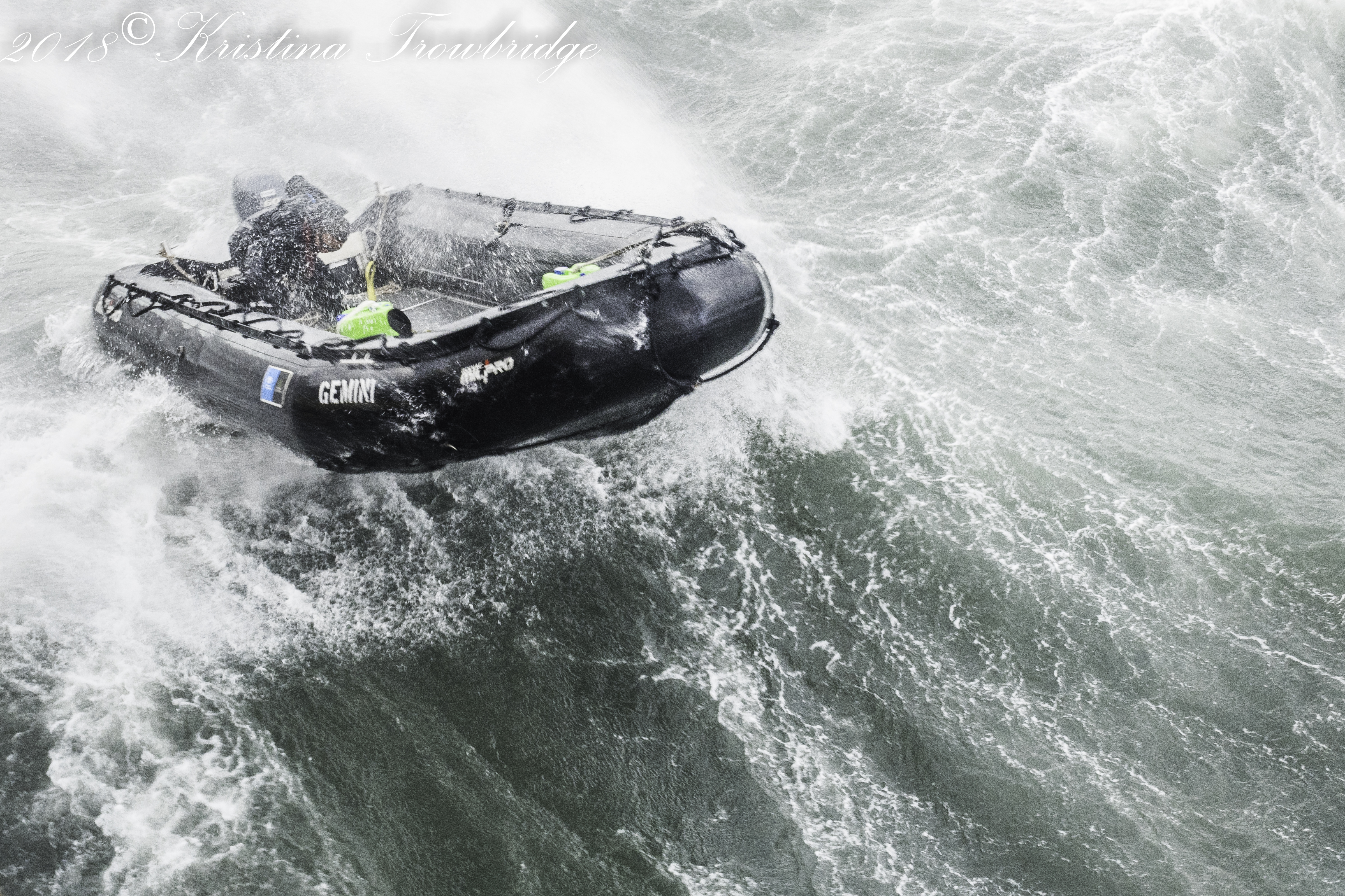 Hoisting the zodiac in hurricane force wind