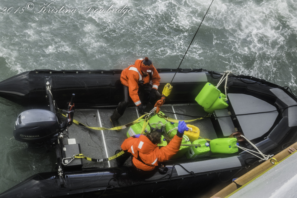 Hoisting the zodiac in hurricane force wind