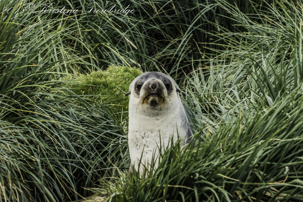 Fur seal in the Tussock grass