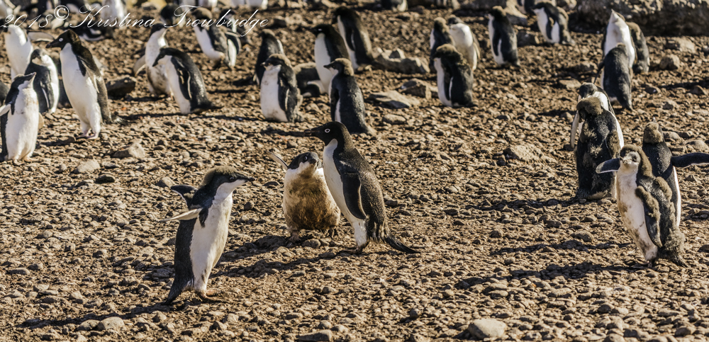 Adelie Penguin mom running from her chick