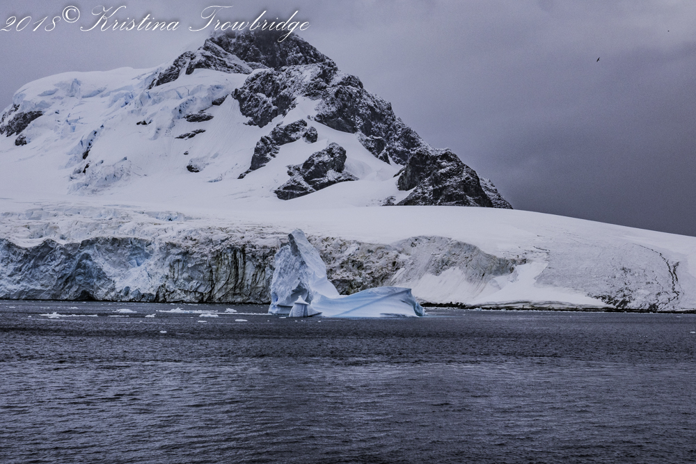 A rocky outpoint with icebergs