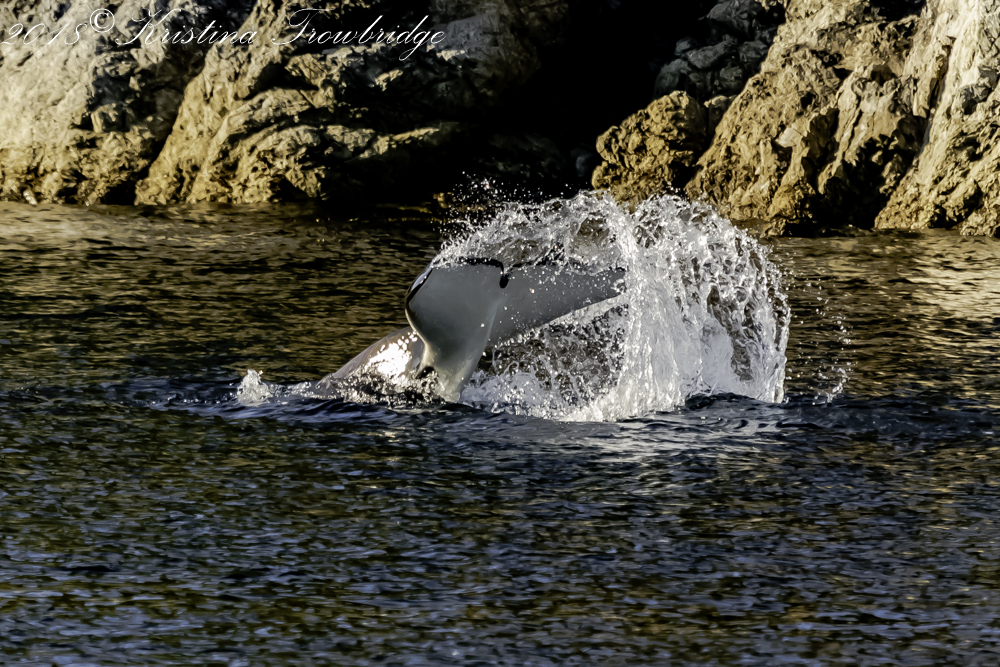 Orcas in the mist, tailslap