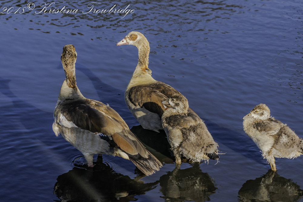 Egyptian geese with chicks & shadows