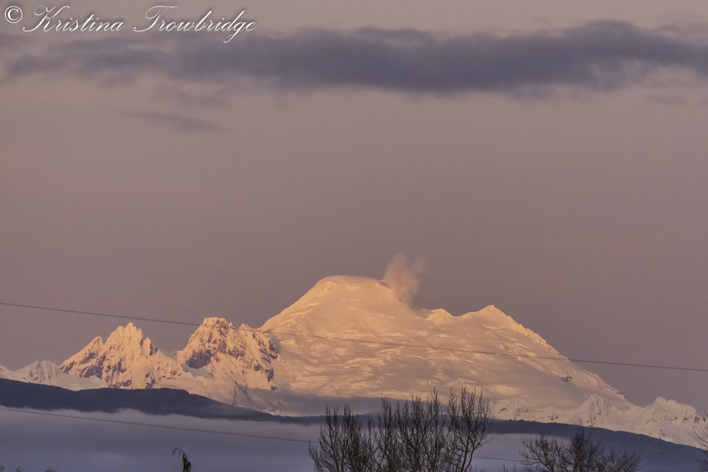 Mt. Baker smoking at sunset