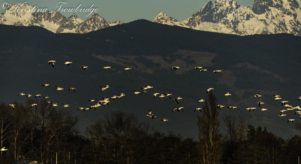 Mt. Baker at sunset with snow geese