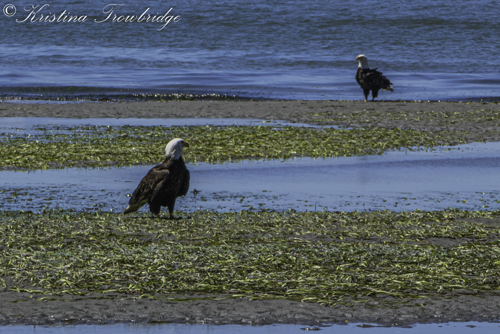 Eight Bald Eagles on the beach