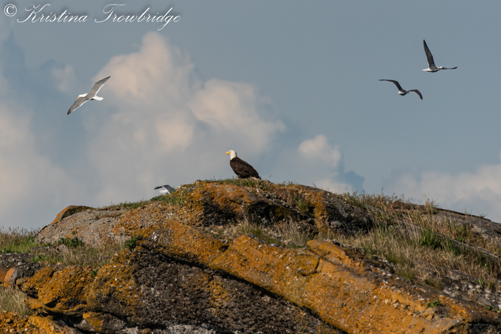 Bald eagle harassed by gulls