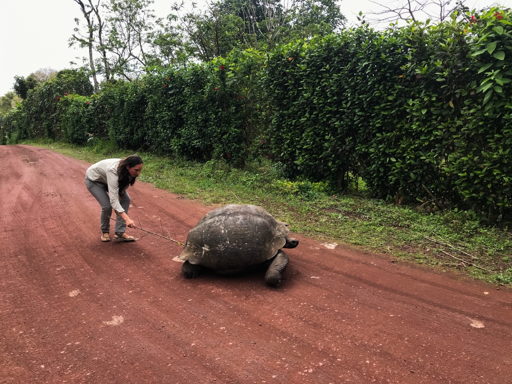 Giant tortoise in the road