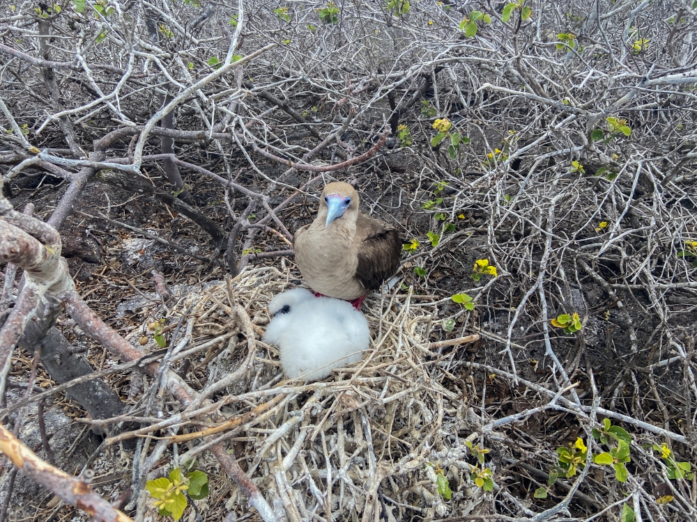 Red-footed Booby and chick