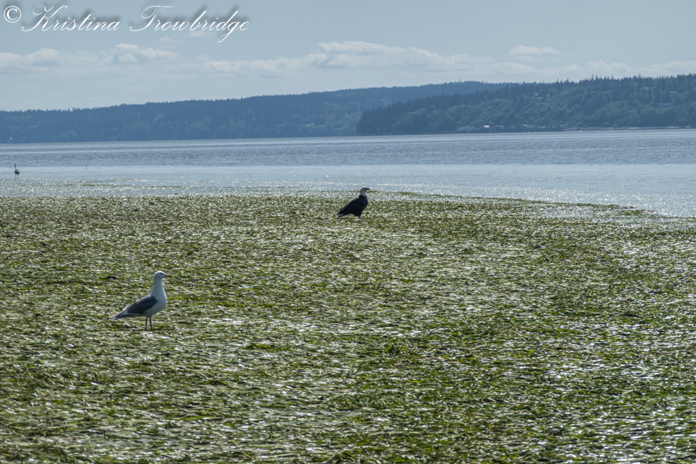 Bald Eagle, Western Gull and a heron
