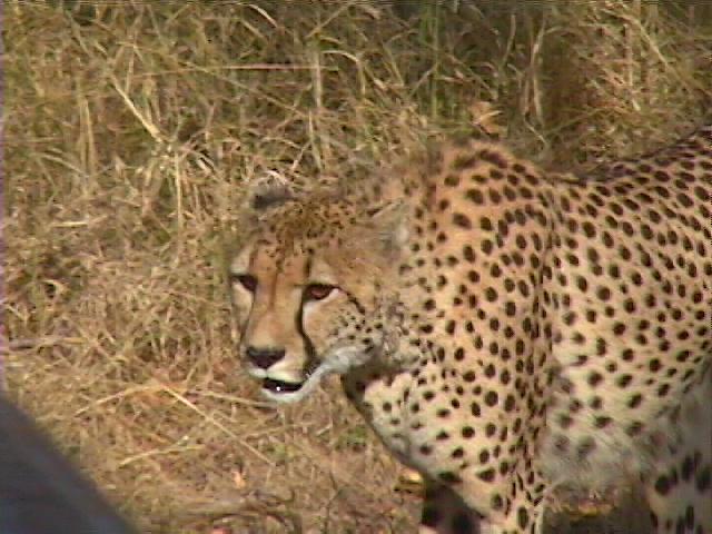 Cheetah investigates safari vehicle