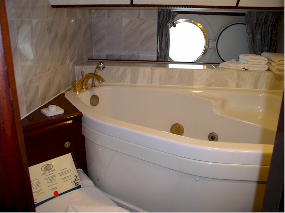 Jetted bath tub in the owners cabin.