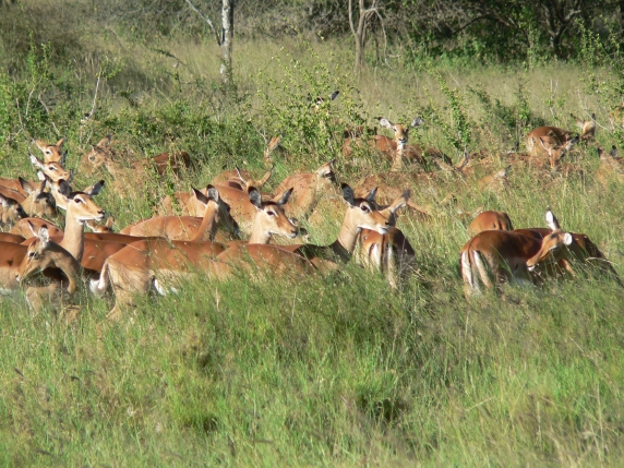 the male impala tries to keep the females together