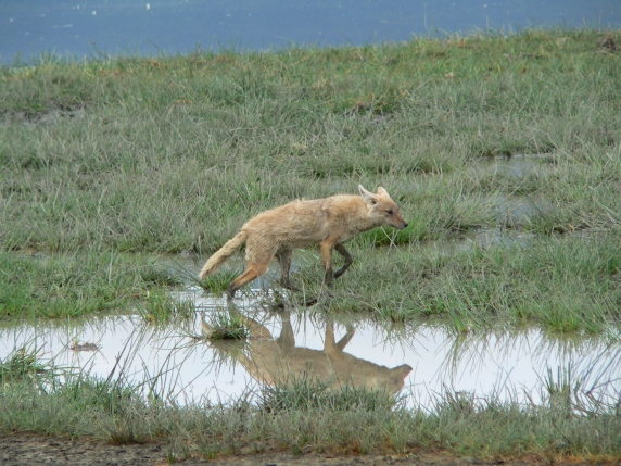 golden jackals eat flamingo