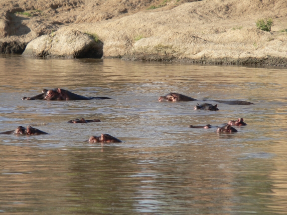 hippos in front, rock in back, yes?