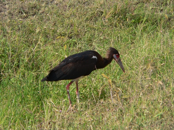 Abdim's Stork is dark brown with contrasting white abdomen