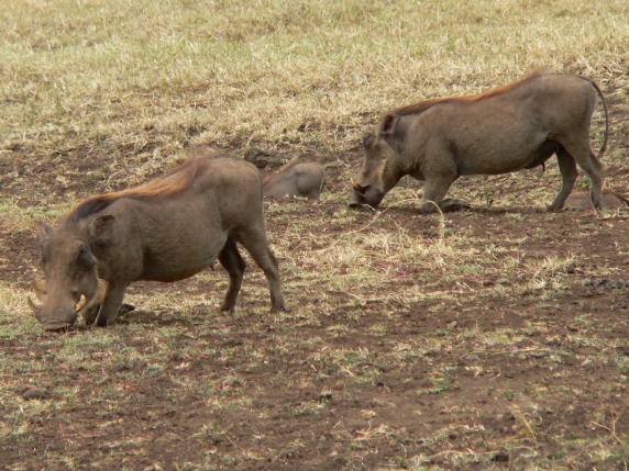 The wart hog usually lives in small family groups