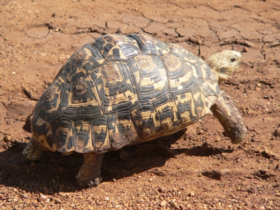 This tortoise favors semi-arid, thorny to grassland habitats