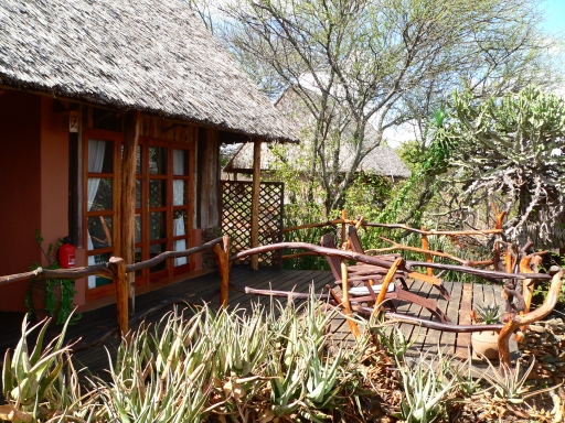 Each room has large French windows that open onto a private deck cantilevered off the escarpment.