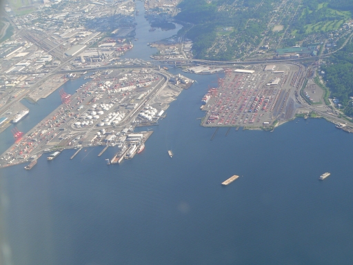 the busy commercial port in Elliott Bay