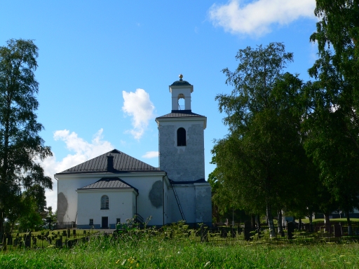 the church is surrounded by graves
