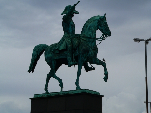 this statue stands on Karl Johans Torg commemorating the first king of the Bernadotte dynasty