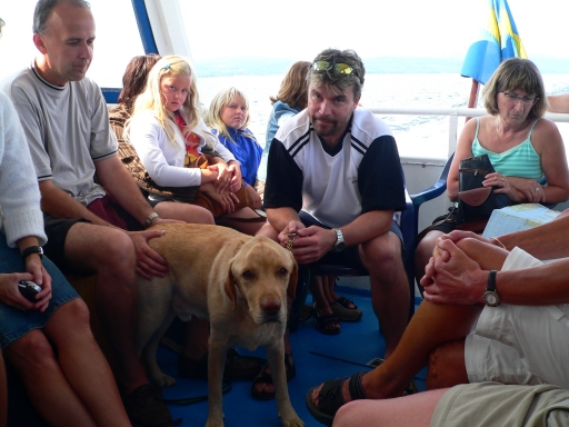 people and dogs are packed onto the boat for the 1 hour ride