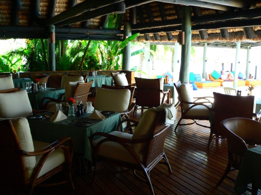 Overlooking the pool and ocean beyond, the bar serves wine, beer and exotic drinks