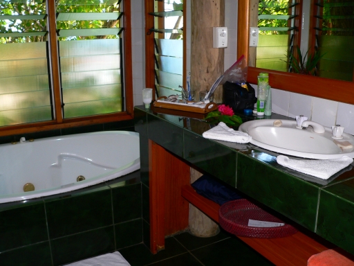 have polished Fijian hardwood floors, floor to ceiling screen louvered windows